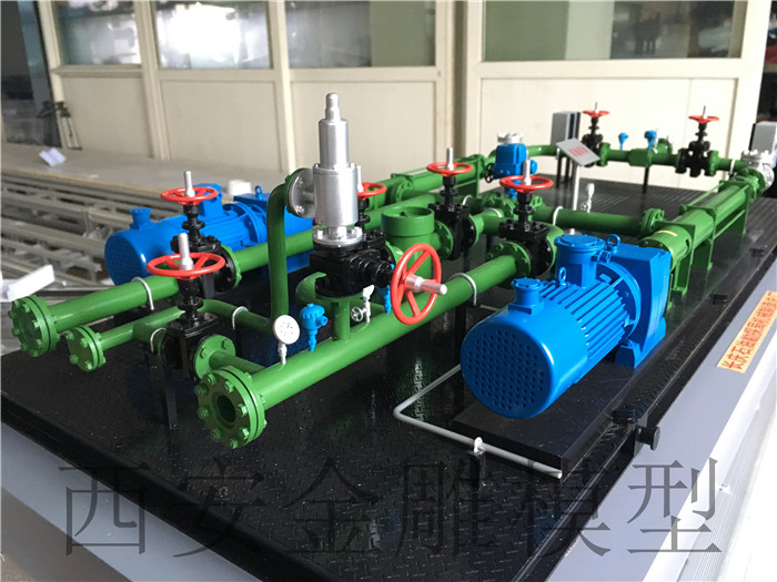 石油機(jī)械廠委托我公司制作的石油撬模型,根據(jù)真實(shí)石油撬的布局及尺寸等比縮放制作,首先是現(xiàn)場(chǎng)采集照片,cad圖紙縮放,分塊制圖,分塊粘貼,分塊制作,打磨噴漆,整體組裝,最后整體調(diào)整。石油撬模型。
